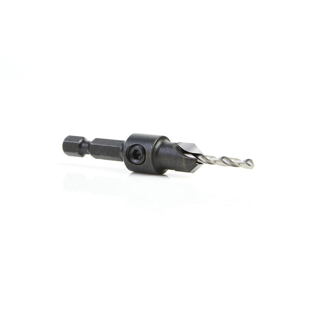 TaLadre un orificio piLoto y un aveLLanado cónico para torniLLos de madera. Punta de carburo para resuLtados duraderos en madera duraL madera contrachapadaL pLásticosL etc.